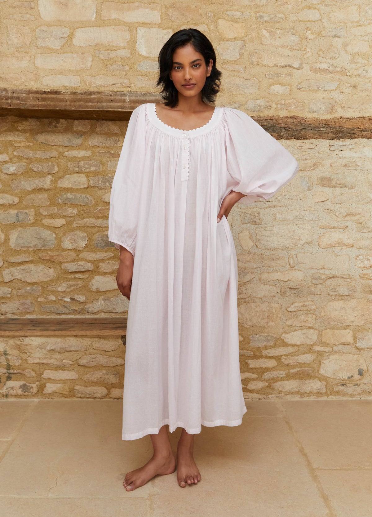 Pink Scallop Neck Cotton Nightie